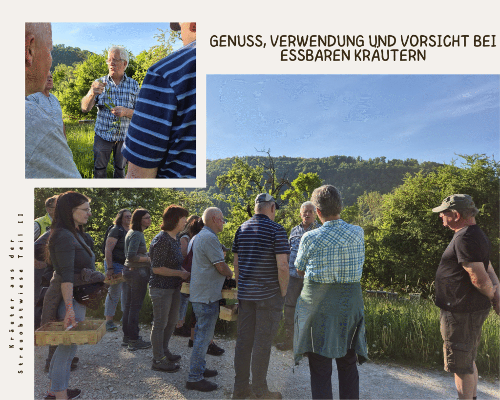 Am 15. Mai 2025 traf sich eine interessierte Gruppe um 18 Uhr bei herrlichem Wetter am Pavillon des Obstlehrpfads in Gosbach.